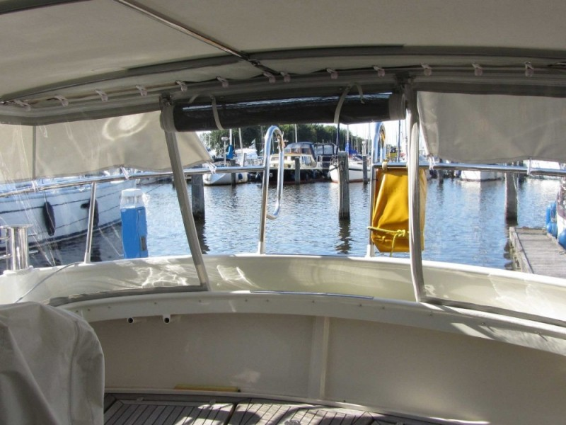 Die Cockpitabdeckung bietet neben einem zusätzlichen Wohnraum viel Licht und Schutz vor Regen und Sonne. Das Moskitonetz sorgt für eine insektenfreie Belüftung. Sonnenschutzmittel halten die Hitze in der Kabine fern. Eine Badeplattform mit 4 Stufen Badeleiter erhöht das Badevergnügen.