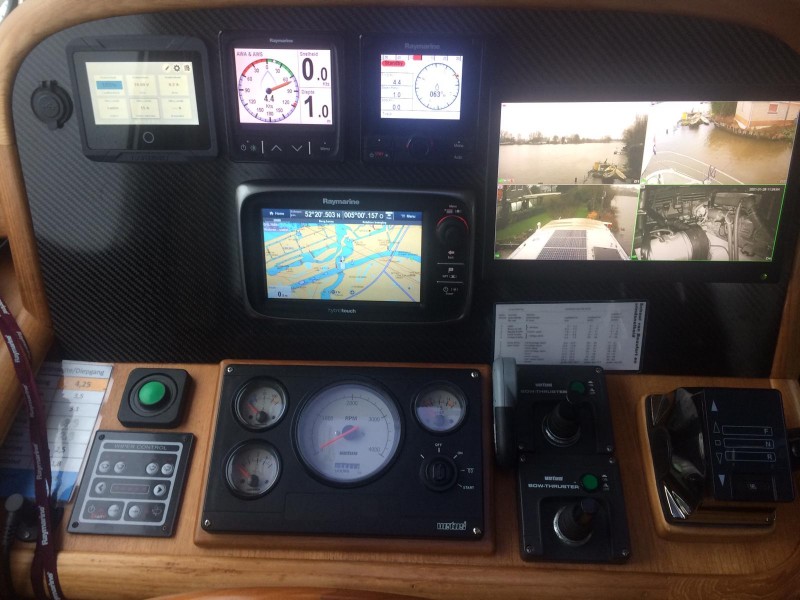Den Antrieb liefert der Vetus Deutz DT43 mit 106 PS. Das Festmachen ist sehr einfach, da das hydraulische Bug- und Heckstrahlruder von innen und / oder außen gesteuert wird. Der Bruce-Anker wird mit der hydraulischen Ankerwinde abgesenkt und angehoben. Aufgrund des faltbaren Edelstahlmastes ist die Spielhöhe gering. Neben dem Vorhandensein eines vollständigen Navigationssystems sorgen rutschfeste Matten auf dem Deck und die 4 On-Board Kamara's mit recording Funktion für ein Gefühl der Sicherheit , eben wennn Sie sind nicht da!