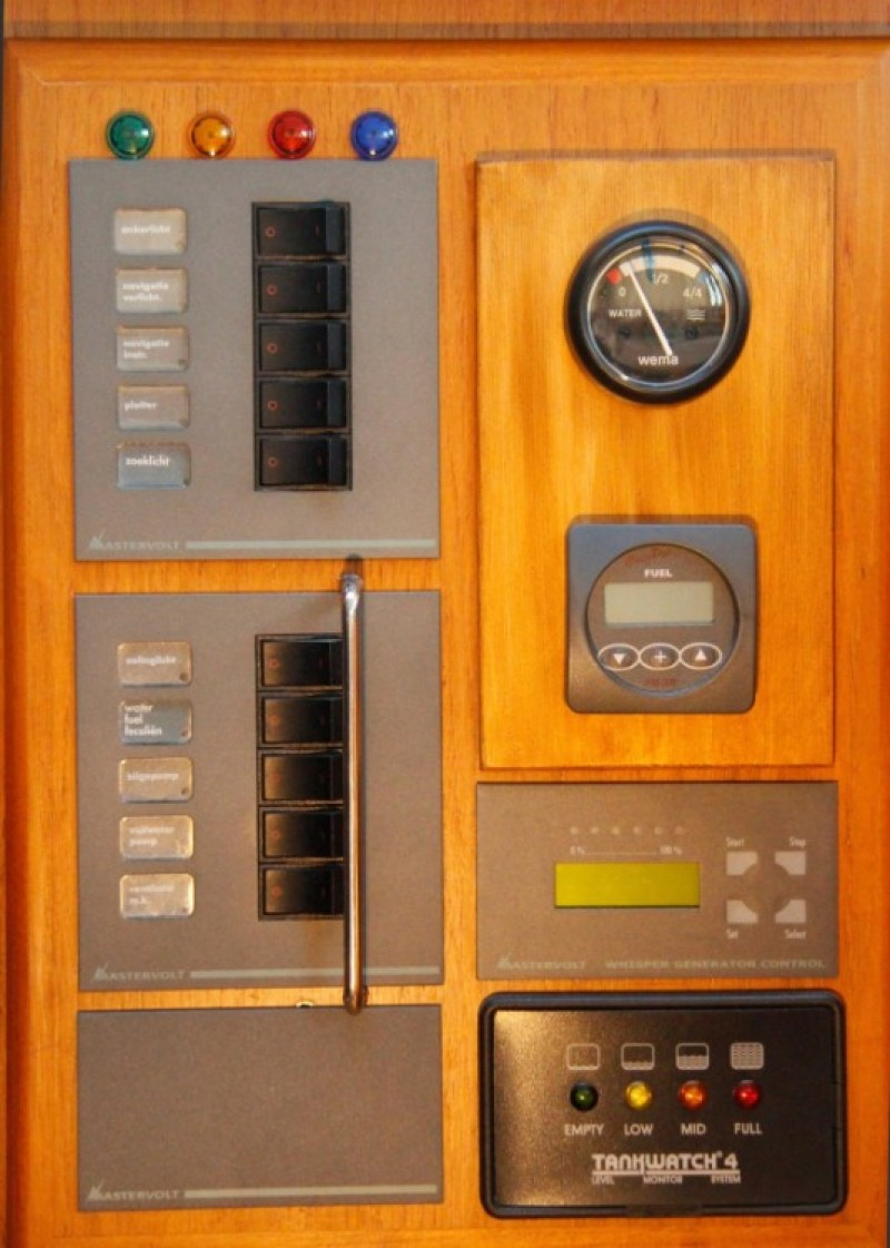 Die notwendige Energie für ein unabhängiges und komfortables Leben an Bord liefern 3x 135 W Sonnenkollektoren, ein zusätzlicher Dynamo und der Generator. Der Mastervolt Combi Ultra 12 / 3000-100 kümmert sich um all dies und sorgt dafür, dass die 2x 225 Ah AGM-Batterien immer aufgeladen sind. Zusätzliche Heizkörper, LED-Beleuchtung und eine TV / DVD-Kombination sorgen für gemütliche Abende.