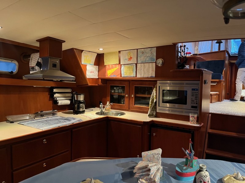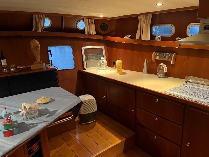 Im Achterschiff befindet sich die geräumige Kombüse an Backbord und ein zweiter L-förmiger Sitz an Steuerbord.
