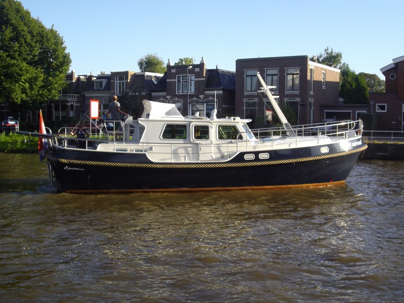 Nicely and professionally maintained Kuster A-45 2001 "Voortvarend" dimensions: 13.45 x 4.65 x 1.30 m. (headway 3.10 m). The yacht has four fixed berths (two in the owner's cabin and two in the guest cabin). Equipped with Vetus-Deutz DT64 / 117 kW (159 hp) diesel engine, electric bow thruster, solar panels, Webasto heating and davits. The "Voortvarend" is fully equipped including an electric toilet with separate shower, 3-burner stove, oven, refrigerator (110 liters) and freezer compartment, Candy washing machine, safe, etc. This Kuster A-45 has also a complete navigationset with Raymarine ST 6001 autopilot, Raymarine RC 520 plotter, Raymarine ST60 multiview, Ray260 VHF (2014). This very well maintained yachts (refit teakdeck 2012, painted 2013, new batteries 8 x 200 Ah 2008) is aviable for viewing in our sales marina in Harlingen.