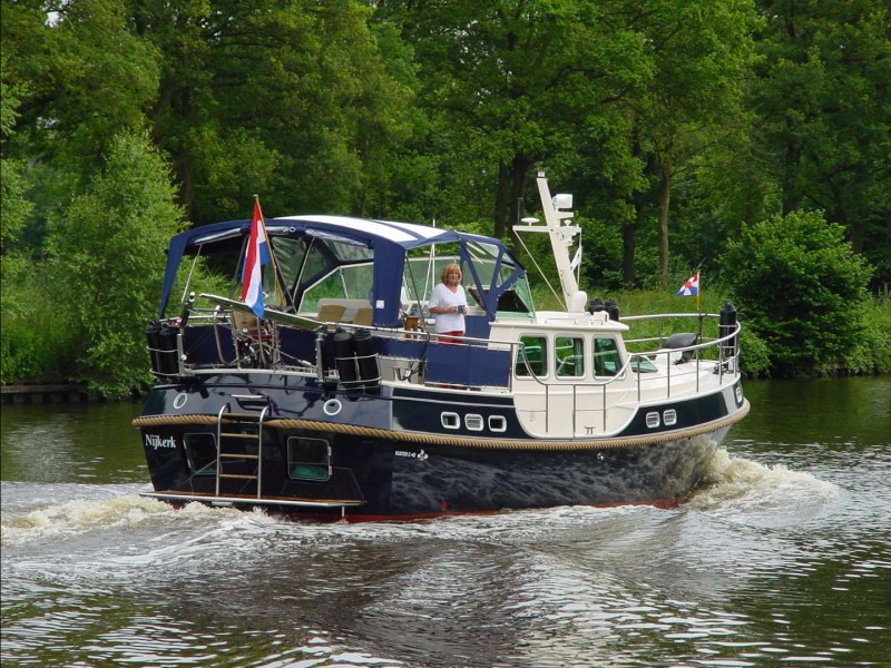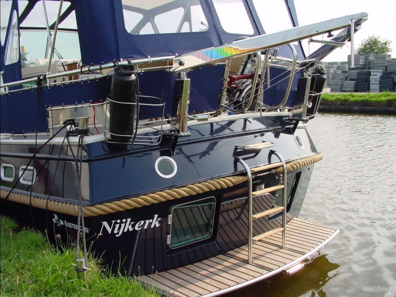 Navigationsinstrumenten bestückt werden. Von der fest aufgestellten Steuerbank ist das Schiff komfortabel zu fahren. Der Windschirm mit den darin montierten robusten Scheibenwischern schützt Sie vor Wind und Wetter. Die um das Schiff laufende hohe Reling und die an den richtigen Stellen angebrachten Handläufe sorgen für Sicherheit an Deck. Vom “Campagnedek” erreicht man über eine feste Stufe das breite Gangbord, um auf das Vordeck zu gelangen. Der Mast ist legbar. Robuste Poller aus rostfreiem Stahl stehen an den richtigen Stellen, um Festmacher zu belegen.