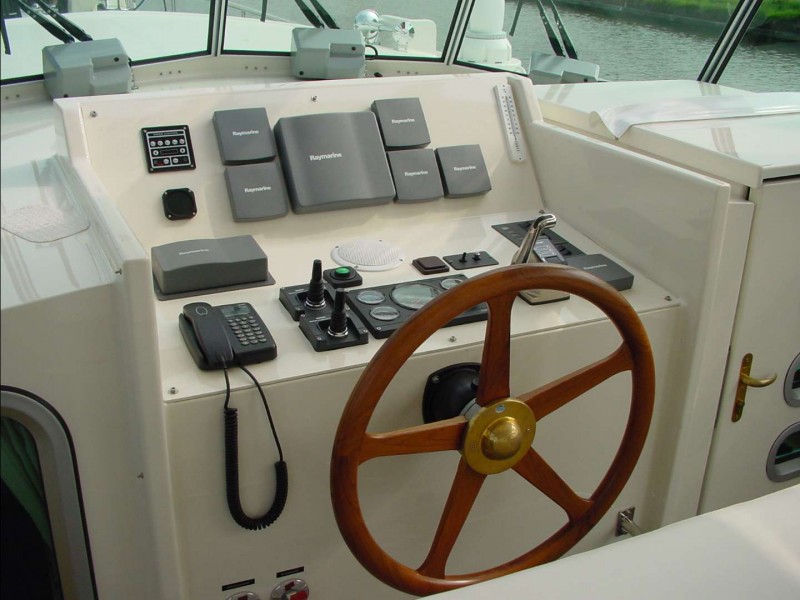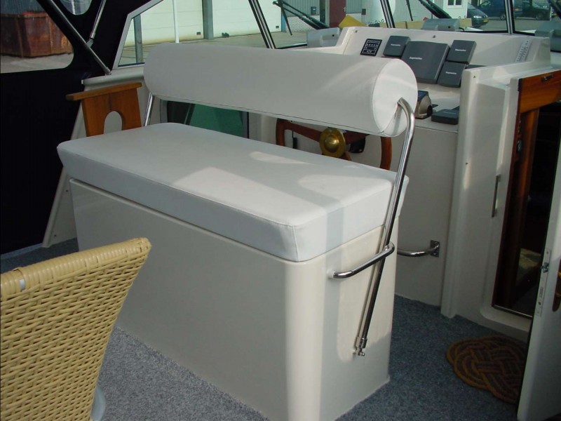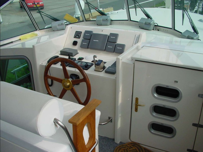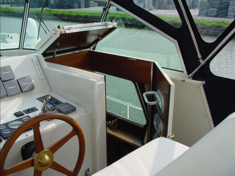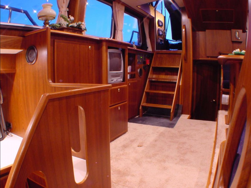 Onder het plateau zijn 2 diepe laden aangebracht voor bijvoorbeeld de zeekaart of andere boekwerken. Aan stuurboord zijn diverse kasten en laden aangebracht. Er bestaat de mogelijkheid voor het plaatsen van een LCD-televisie scherm zodat ook ’s avonds na het varen rustig een film kan worden bekeken. Onder de salonvloer is de motorkamer geplaatst. Via een goed geïsoleerd luik kan middels de rvs trap het motorruim worden betreden. De volledig geïsoleerde ruimte is uitgevoerd met verlichting zodat inspecties altijd mogelijk zijn. De robuuste 6 cilinder Vetus Deutz dieselmotor staat centraal opgesteld, met daar omheen de hulp systemen. Onderhoud is daardoor makkelijk uitvoerbaar.
